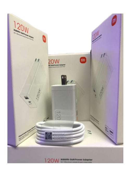 CARGADOR CARGA RAPIDA XIAOMI DE 120 W DOBLE PUERTO CON CABLE TIPO C A TIPO C
