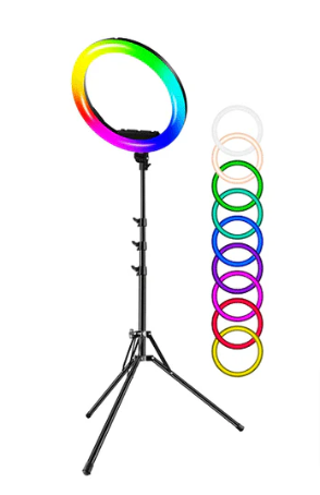 ARO DE LUZ PROFESIONAL RGB CON TRIPODE DE HASTA 2 METROS